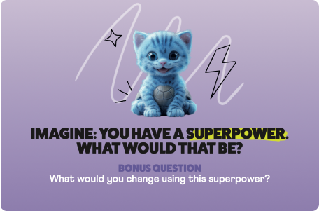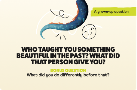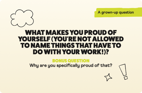 The questions are made for children, but it is way more fun if the grown-ups answer them too. Have a good old chat together. You can easily grab a card: at the dinner table, after brushing your teeth or maybe even at the top of the slide. Oh, and definitely ask your favourite question a lot: why?